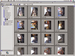 メモリーリーダーでminiSDカードからパソコン(Mac)にデータを取り込み、富士写真フイルムのデジカメビュアー「Exif Viewer」で見てみると全部のコマが横倒しの向きで表示され、いちいち90度右回転して拡大画像を見る事になり大変不便です。