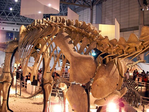 恐竜が最も巨大化した後期ジュラ紀(1億6120万年前〜1億4550万年前)を代表する世界最大級の竜脚類スーパーサウルスや、ディプロドクス、カマラサウルスなど、北米のモリソン層から発見された巨大竜脚類の繁栄の軌跡をたどります。モリソン層と同時期のポルトガルの地層から発見されたカマラサウルスと近縁のロウリンハサウルスも展示します。後期ジュラ紀の北米とヨーロッパではよく似た種類の恐竜が繁栄していた可能性をうかがわせます。あわせて、竜脚類巨大化の起源とも言われる東アジアで生息していた恐竜マメンキサウルス、シュノサウルスなども展示、大型の復元骨格が林立する“恐竜山脈”が出現します。また、植物食恐竜を捕食していたアロサウルスやケラトサウルスなどの肉食恐竜も登場し、大型化していく獣脚類の姿を紹介します。