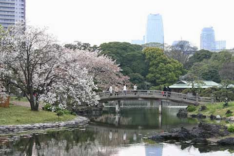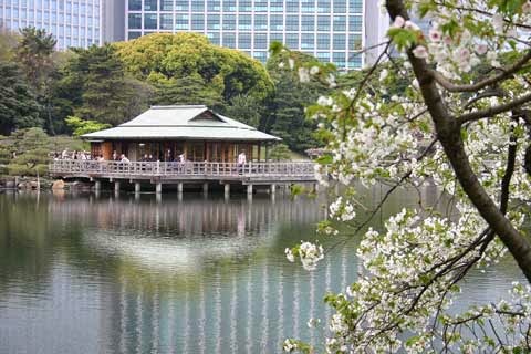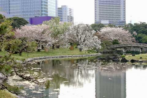 かっては徳川将軍家の浜御殿だった此処、浜離宮恩賜庭園。間近に、汐留シオサイトの超高層ビルが都心であることを証明するように建っていました。