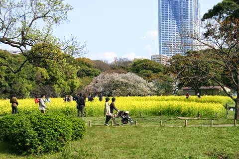 桜と菜の花のコラボも見られた浜離宮恩賜庭園