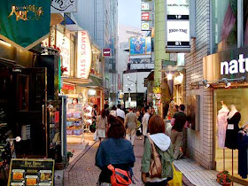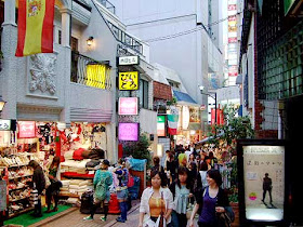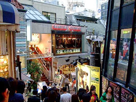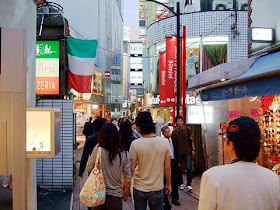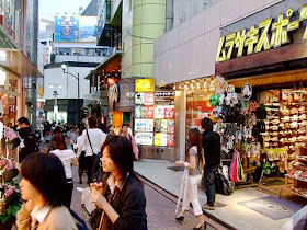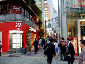 渋谷の東急ハンズへ買い物に行った帰り、入店した裏口と反対側のエントランスから出てパルコの間を抜けてスペイン坂へ向かいました。ちょうど夕暮れ時で空は未だ明るく足下は薄暗く、両側のショップはカラフルな彩りの照明にひときわ目立っていました。